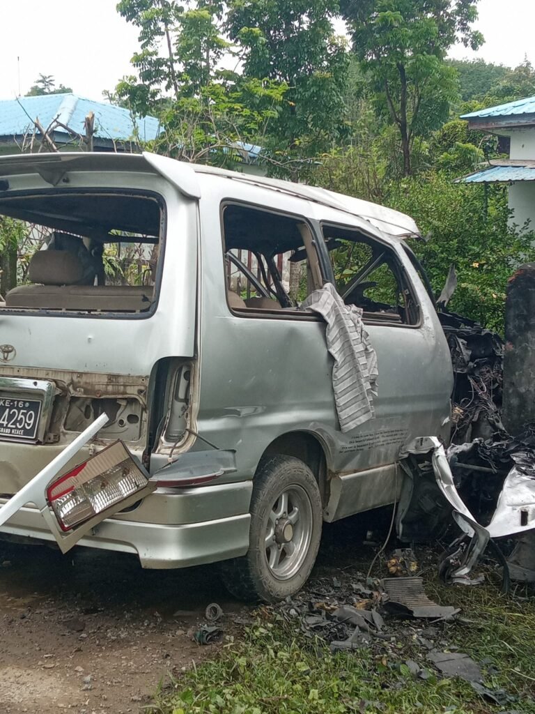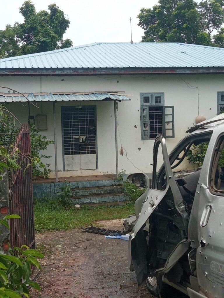 ပုံစာ – စစ်ကောင်စီလက်နက်ကြီးကြောင့် ဇွန်လ ၁၇ ရက်နေ့က သင်တန်းရေးရာဌာနမှူးအိမ်နှင့် ကာားပျက်စီးသွားသည့်မြင်ကွင်း။