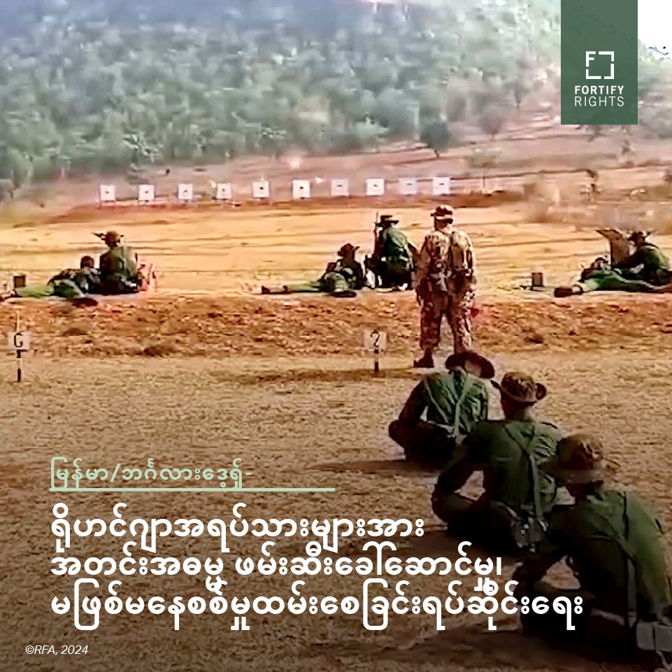 ရခိုင်ပြည်နှင့် အခြားနေရာဒေသများတွင် မြန်မာစစ်ကောင်စီ၏ တရားမဝင် အတင်းအကျပ်စစ်မှုထမ်းခေါ်ဆောင်ခြင်းလှုပ်ရှားမှုကို ရပ်တန့်ရမည်ဟု Fortify Rights အဖွဲ့က ဇူလိုင်လ ၂၆ ရက်တွင် တောင်းဆိုလိုက်သည်။