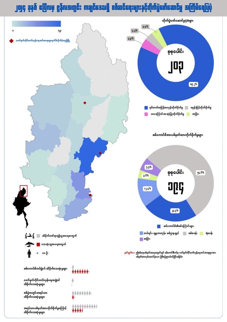 ၂၀၂၄ ခုနှစ်၊ ဒုတိယ (၃) လတာအတွင်း လက်နက်ကိုင်တော်လှန်ရေးအင်အားစုများနှင့် စစ်ကောင်စီအကြား တိုက်ပွဲဖော်ဆောင်မှုသည် စုစုပေါင်း ၁၇၄၁ အကြိမ်ရေထိရှိခဲ့ပြီး ရှမ်း (အရှေ့) ဒေသတွင်သာ တိုက်ပွဲ (လုံးဝ) ဖြစ်ပွားခြင်းမရှိခဲ့သည်ကို တွေ့ရှိရသည်။