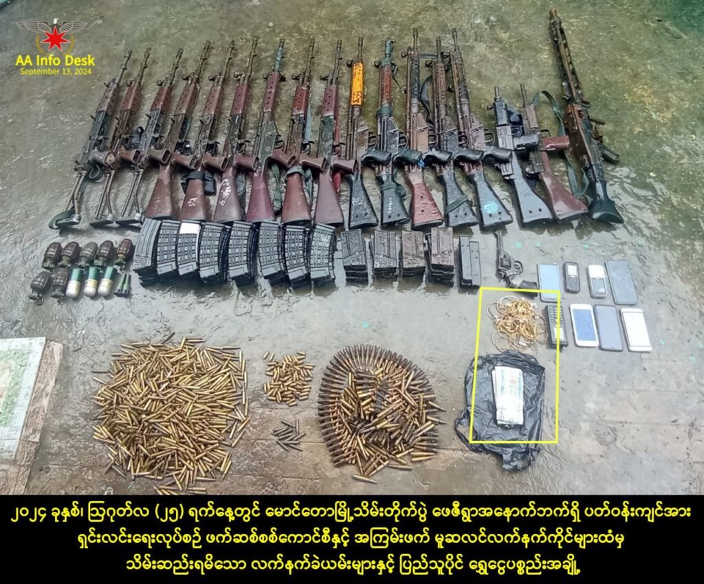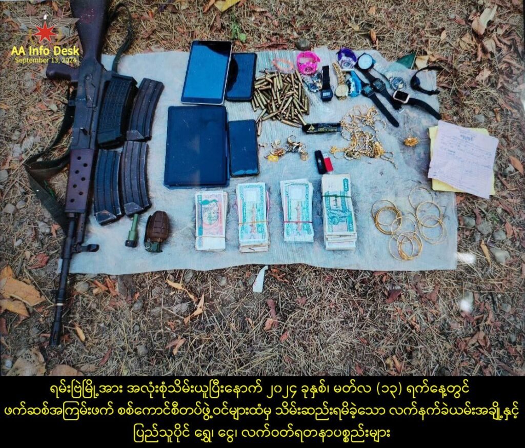ယမန်နေ့ စက်တင်ဘာလ ၁၃ ရက်နေ့ ညက ထုတ်ပြန်ချက်တွင် စစ်ကောင်စီတပ်ဖွဲ့ဝင်များက ပြည်သူပိုင်ပစ္စည်းများကို ယူထားကြသည်ကို ဓါတ်ပုံနှင့်တကွ AA က ဖော်ပြခဲ့သည်။