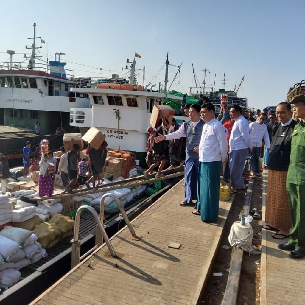 ယင်းအပြင် ဦးထိန်လင်းနှင့် ပြည်နယ်ဝန်ကြီးအဖွဲ့တို့သည် စစ်တွေမြို့ရှိ ကုလားတန်ဖွံ့ဖြိုးရေး စီမံကိန်းဆိပ်ကမ်းတွင် ကုန်တင်ကုန်ချလုပ်နေသော ကမ်းရိုးတန်းသွားသင်္ဘောများကို ကြည့်ရှုစစ်ဆေးခဲ့ကြောင်း သိရသည်။