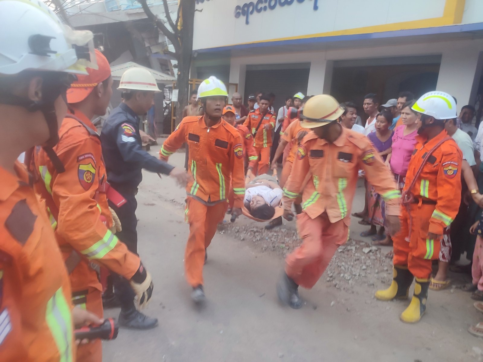 ယနေ့ နံနက်ပိုင်းတွင် ပြိုကျနေသော ငလျင်ကြောင့် ကမ္ဘောဇဘဏ် အဆောက်အဦအတွင်း ၂၄ နာရီကျော် ပိတ်မိသော ဘဏ်ဝန်ထမ်းတစ်ဦးအား အန္တရာယ်ကြားမှ ခက်ခက်ခဲခဲ ကယ်ဆယ်ခဲ့သည်ကို တွေ့ရသည်။