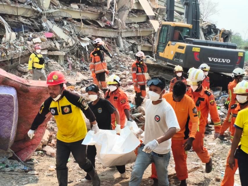 အဆိုပါ အဆောက်အုံတွင် ပျောက်ဆုံးနေသူများ ပိတ်မိနေသူများအား ရှာဖွေကယ်ဆယ်ရေး လုပ်ငန်းများ ဆက်လက်ဆောင်ရွက်လျက်ရှိကြောင်း မြန်မာနိုင်ငံ မီးသတ်ဌာနက သတင်းထုတ်ပြန်သည်။