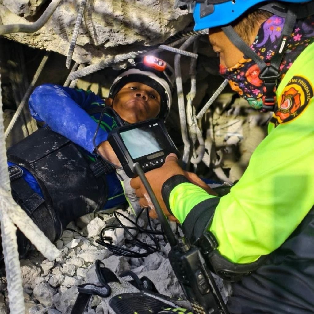 အဆောက်အဦးအား ဇုန် (Zone) များ သတ်မှတ်ပြီး ကယ်ဆယ်ရေးပြုလုပ်နေရာ Zone B ဘက်တွင် အဆောက်အဦး မျက်နှာပြင်အောက် ၃ မီတာအကွာတွင် တယ်လီဖုန်းမီးဖြင့် အချက်ပြနေသည်ကို တွေ့ရှိရသည်ဟု ယနေ့ နံနက် ဧပြီလ ၁၁ ရက် နံနက်ပိုင်းတွင် ကယ်ဆယ်ရေးပြုလုပ်နေသူများက ပြောဆိုထားခြင်းဖြစ်သည်။