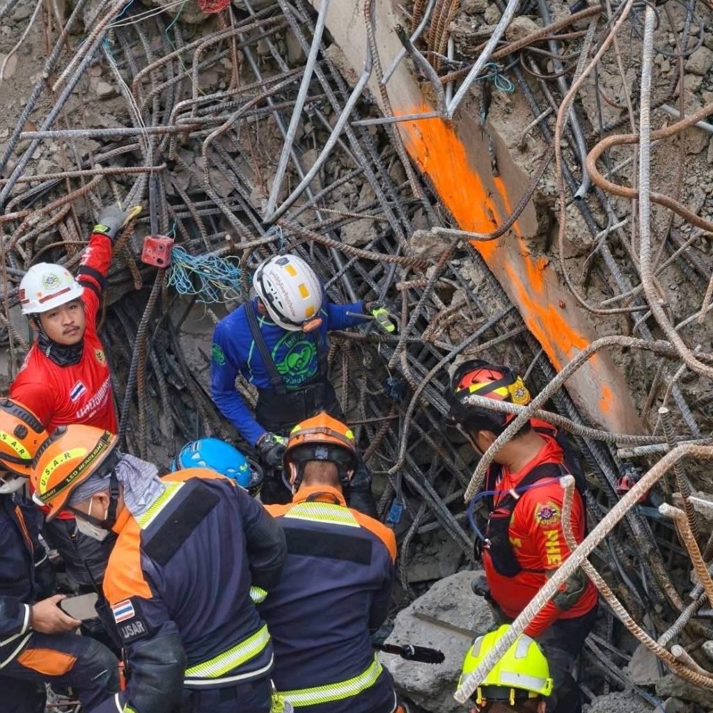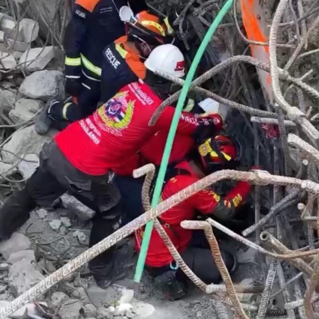 Home » ဘန်ကောက်ငလျင် ပြိုကျအဆောက်အဦးထဲ ဖုန်းမီးဖြင့်အချက်ပြမှု တွေ့ရှိသည်ဟု ကယ်ဆယ်ရေးသမားများ ပြော