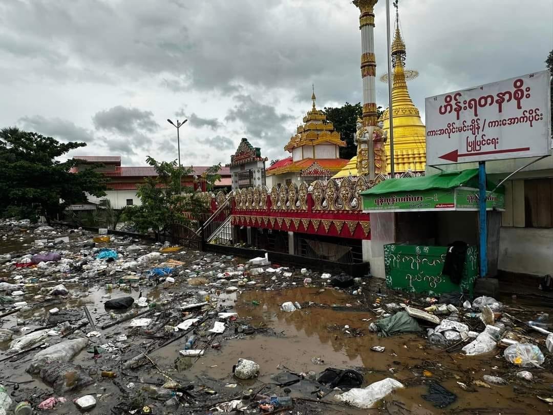 မြဝတီနှင့် မဲဆောက်မှာ ပြီးခဲ့သည့် ဇူလိုင်လ ၂၄ ရက်နေ့ညက သောင်ရင်းမြစ်ကရေတက်လာပြီး အနိမ့်ပိုင်းနေရာများအားလုံး ရေလွှမ်းမိုးသွားခြင်းဖြစ်သည်။
