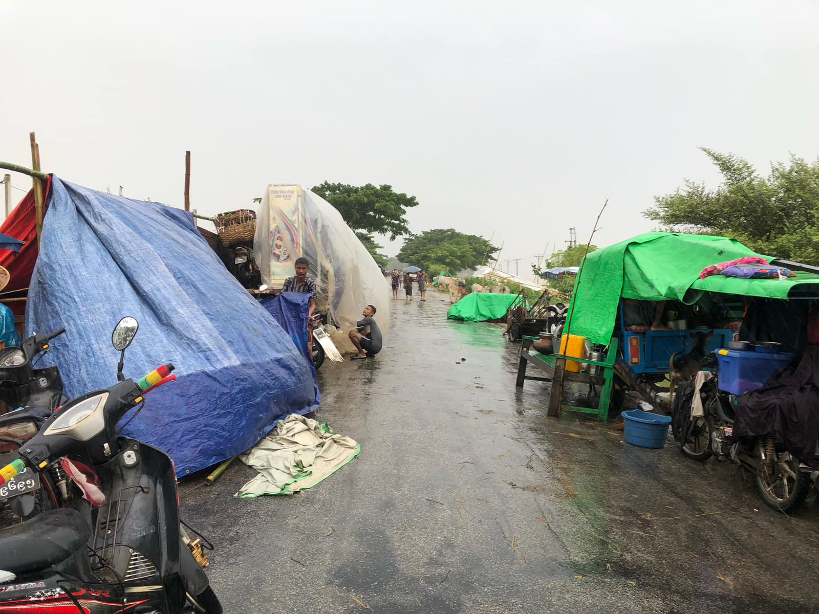 ရေလှိုင်ကြီးပြီး ရေစီးပြင်းသောကြောင့် ကူညီကယ်ဆယ်ရေးအဖွဲ့များမှာ မလာရောက်ကြ၍ မနက်ဖြန်မှ လာရောက်ကယ်ဆယ်ကြမည်ဟု ပြောထားကြောင်းနှင့် ဖြစ်သလို လမ်းမပေါ်မှာပဲ ကယ်ဆယ်ရေးအဖွဲ့ကို မျှော်ရင်း အိပ်ရတော့မည်ဟု သိရသည်။
