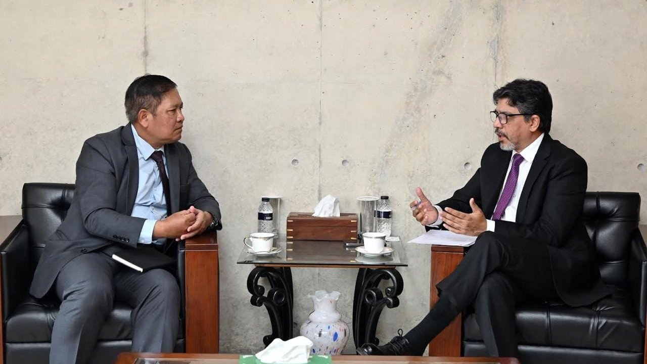 ဘင်္ဂလားဒေ့ရှ် နိုင်ငံခြားရေးဝန်ကြီး Md Jashim Uddin နှင့် ဘင်္ဂလားဒေ့ရှ်ဆိုင်ရာ စစ်ကောင်စီ သံအမတ် ဦးကျော်စိုးမိုးတို့ ယမန်နေ့ နိုဝင်ဘာလ ၁၀ ရက်နေ့တွင် နိုင်ငံခြားရေးဝန်ကြီးရုံး၌ တွေ့ဆုံခဲ့ကြသည်။