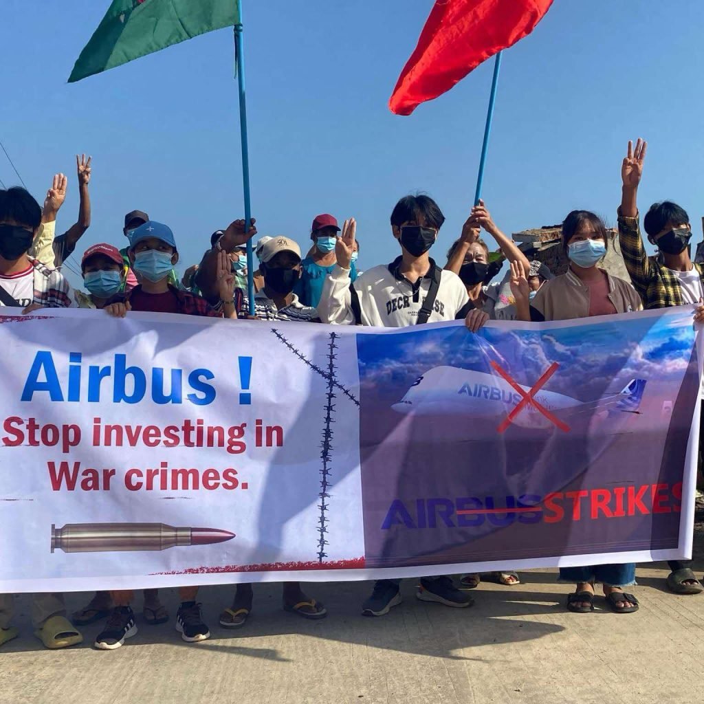 အာဏာသိမ်း စစ်ကောင်စီ စစ်ရာဇဝတ်မှု နေ့စဉ်ကျူးလွန်နေသော စစ်လေယာဉ်များကို ထောက်ပံ့ပေးနေသေည့် တရုတ် Aviation Industry Corporation of China (AVIC) ကုမ္ပဏီနှင့် ဆက်ဆံရေး အဆုံးသတ်ရန် Airbus ကုမ္ပဏီ CEO ထံသို့ မြန်မာတော်လှန်ရေးအင်အားစုများနှင့် အရပ်ဘက်အဖွဲ့အစည်း ၃၀၀ ကျော်က အိတ်ဖွင့်ပေးစာ ပေးပို့တောင်းဆိုခဲ့ကြောင်း သွေးစွန်းငွေဖြတ်တောက်ရေးအဖွဲ့တာဝန်ရှိသူက ပြောကြားသည်။