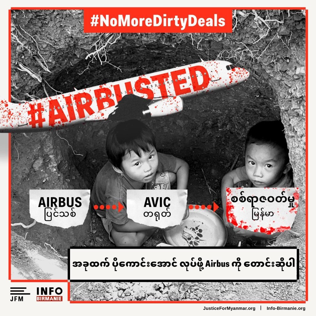 Airbus ကုမ္ပဏီသည် တရုတ် AVIC ကုမ္ပဏီနှင့် ဘဏ္ဍာရေး၊ မဟာဗူဟာချိတ်ဆက်မှုများ မှတစ်ဆင့် ရက်စက်ကြမ်းကြုတ်သည့် ရာဇဝတ်မှုကြီးများကို အားပေးကူညီခြင်း မရှိစေရန် ဂရုပြုရမည်ဖြစ်ကြောင်း အိတ်ဖွင့်ပေးစာတွင် ထောက်ပြထေားသည်။