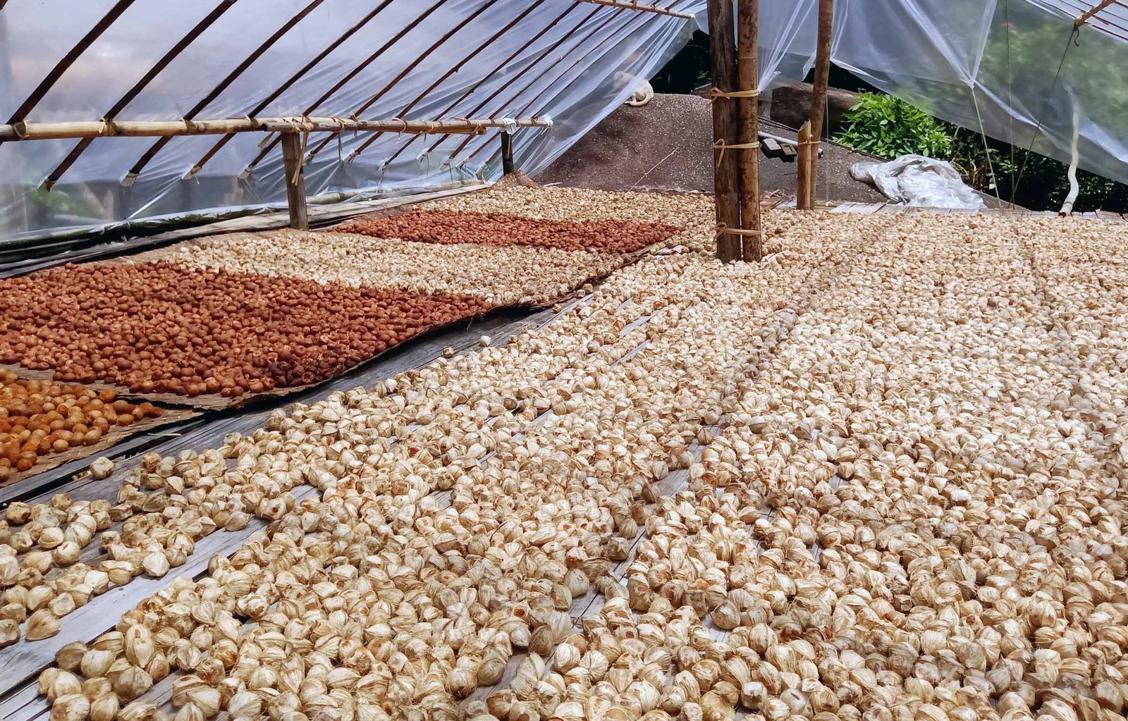 ကွမ်းသီးပင်များမှာ မြေနုရှိကျွန်းဒေသများတွင် အဓိကဖြစ်ထွန်းကြပြီး ကွမ်းသီးစိမ်းများကို စက်တင်ဘာလထဲတွင် စတင်ဆွတ်ခူးကြကာ အခြောက်လှန်းပြီး ရောင်းချကြခြင်းဖြစ်သည်။
