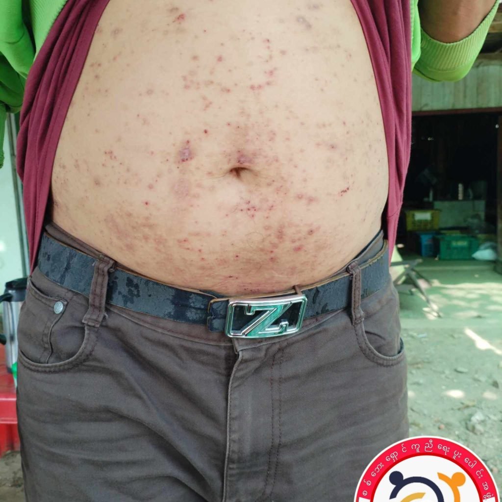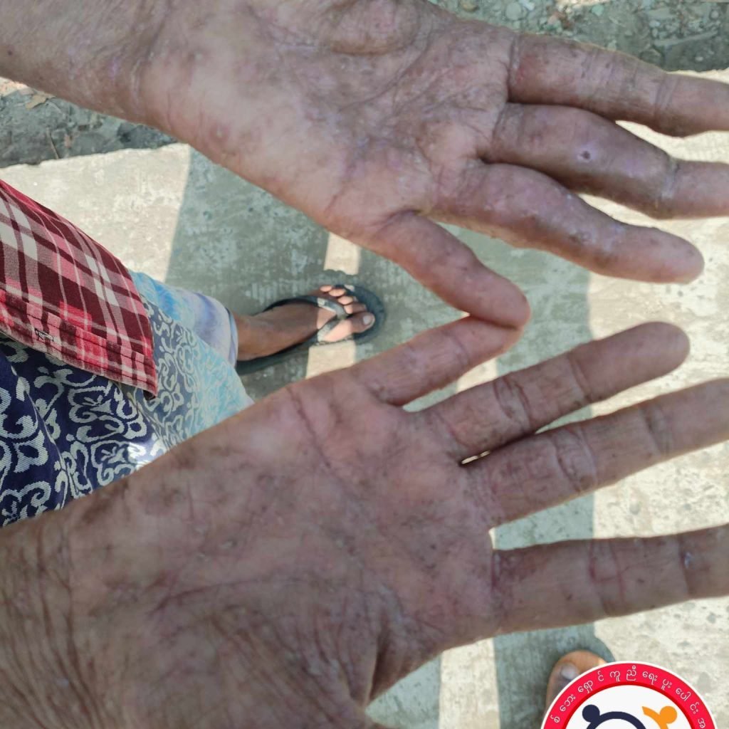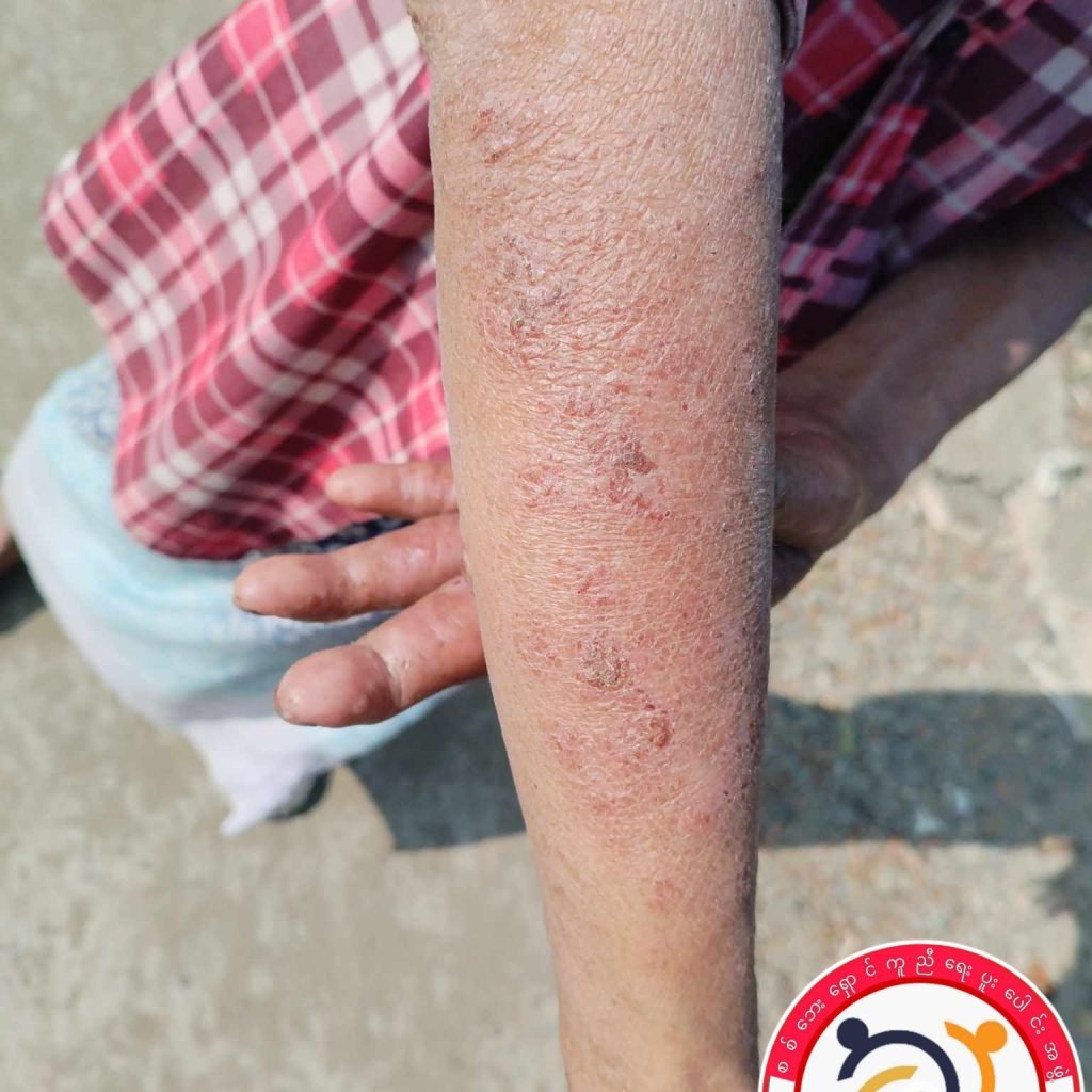 လွန်ခဲ့သည့် တစ်လကျော်ကစ၍ အရေပြားရောဂါလိုမျိုး လက်တွင် ပထမဆုံး ယားယံခြင်းများ ဖြစ်ပေါ်ကာ ယင်းကတစ်ဆင့် ခန္ဓာကိုယ်အနှံ့သို့ ပျံ့နှံ့သွားပြီး အနာစိမ်းအနာခြောက်များ ဖြစ်ပွားနေကြသည်ဟု ဂွမြို့နယ် စစ်ရှောင်ကူညီရေးပူးပေါင်းအဖွဲ့မှ ပြန်ကြားရေးတာဝန်ခံ ကိုနိုင်အောင်လင်းက ပြောသည်။
