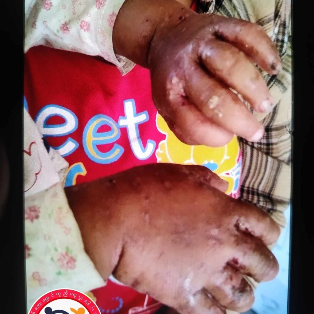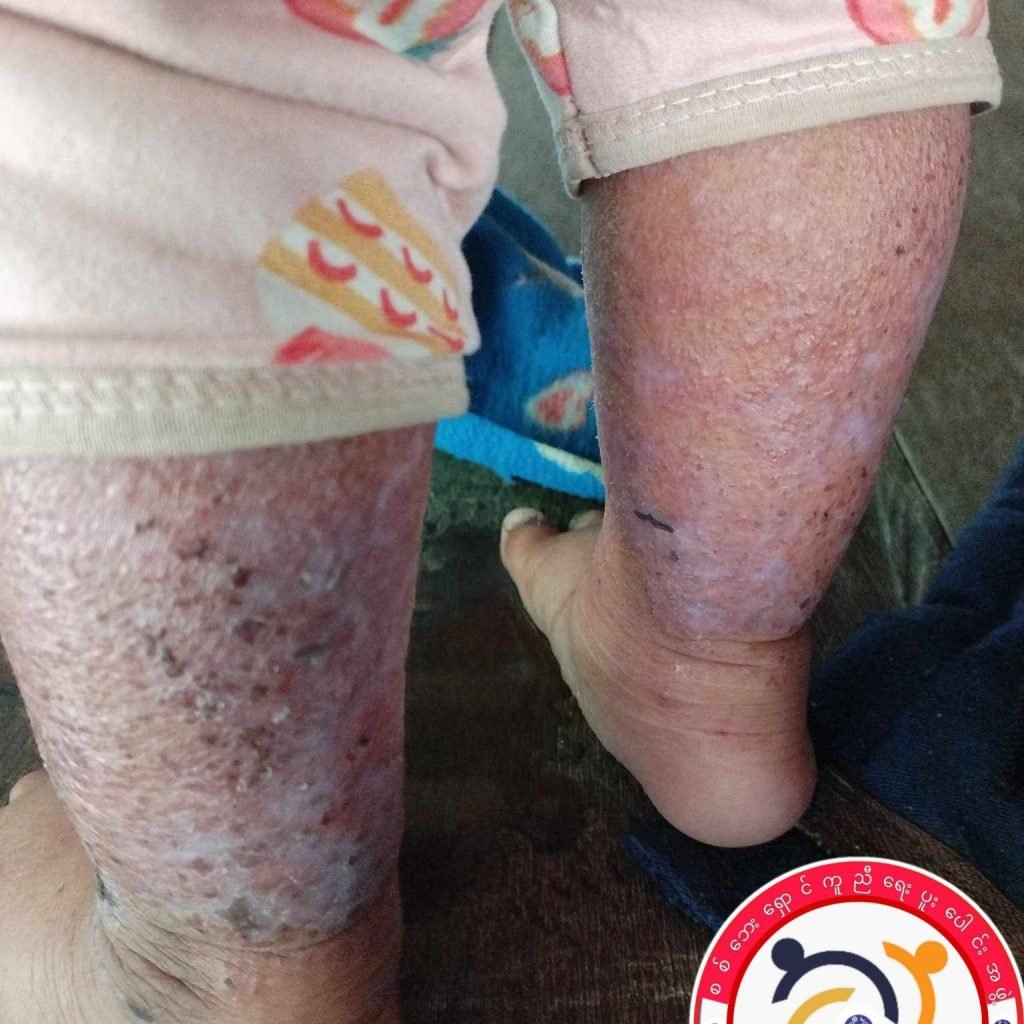 “အနာတွေဖြစ်ပြီးတော့ ခန္ဓာကိုယ်အနှံ့မှာပျံ့ပြီးတော့ ပြင်းပြင်းထန်ထန် ခံစားနေရတာရှိပါတယ်။ အဓိက ပြင်းပြင်းထန်ထန် ဖြစ်ပွားနေတာက ၁၀ နှစ်အောက် ကလေးတွေ များပါတယ်။ ကလေးတွေမှာ တော်တော်လေးကို ပြင်းပြင်းထန်ထန် ခံစားနေရပါတယ်။ စောစောက ပြောသလို အနာစိမ်း၊ အနာခြောက်ပေါက်ပြီးတော့က အရေပြားတွေ ပျက်စီးပြီးတော့ တော်တော်လေး ခံစားနေရတာမျိုး ရှိပါတယ်။ ကလေးတွေဆိုရင် ဒီလိုစစ်ရှောင်ကာလမျိုးမှာ အဟာရ လုံလုံလောက် မစားသုံးရခါကျတော့ ကိုယ်ခံအားနည်းတယ်။ လက်ရှိမှာ အရေပြားရောဂါလည်း ဖြစ်နေတော့ သူတို့မှာ ရောဂါကို ခုခံနိုင်ဖို့ ကိုယ်ခံအားမရှိတဲ့အခါကျတော့ တချို့ကလေးတွေဆိုလို့ရှိရင် အစားအသောက်တွေ ကောင်းကောင်း မသုံးဆောင်ရလို့ ဝေဒနာခံစားနေရတဲ့ အချိန်မျိုးမှာ မခုခံနိုင်တော့ဘဲနဲ့ အစားအသောက်တွေ မဝင်တော့ဘဲနဲ့ အိပ်ရာထဲမှာ လဲနေရတဲ့အထိ ပြင်းပြင်းထန်ထန် ဖြစ်နေတာရှိပါတယ်” ဟု ပြောသည်။