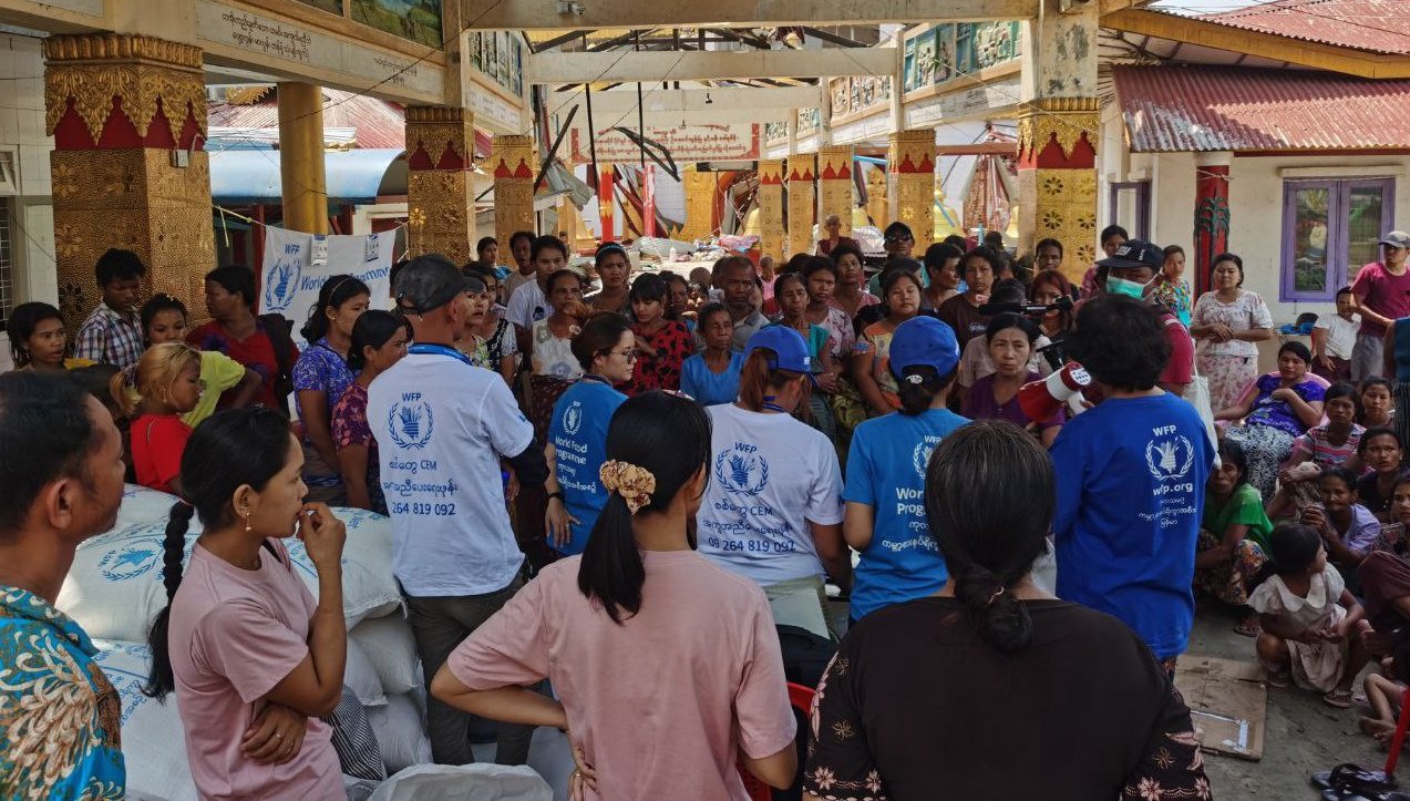 ပုံစာ – ရခိုင်ပြည်က စစ်ရှောင်များကို ၂၀၂၃ ခုနှစ်အတွင်းက WFP မှ လူသားချင်းစာနာမှုဆိုင်ရာ အကူအညီများ ထောက်ပံ့ပေးအပ်နေစဉ်။ (ဓါတ်ပုံ – WFP)