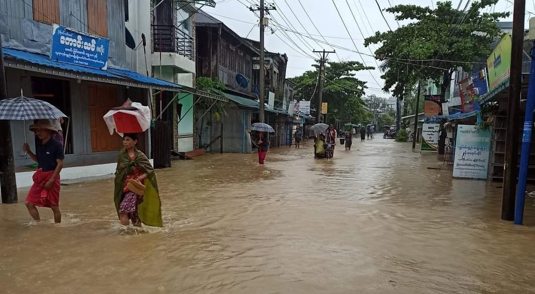 ရခိုင်တောင်ပိုင်းမှာ ရေကြီးပြီး နေအိမ်တွေနစ်မြှုပ်နေလို ဒေသခံတွေ အခက်အခဲဖြစ်နေကြပါတယ်